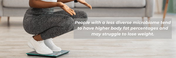 Dessutom har vissa typer av tarmbakterier kopplats till fetma och viktökning. Studier har visat att personer med ett mindre varierat mikrobiom tenderar att ha en högre andel kroppsfett och kan ha svårare att gå ner i vikt. Detta beror på att tarmbakterierna kan påverka hur våra kroppar absorberar och lagrar fett.